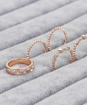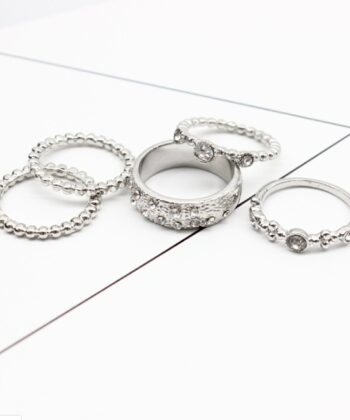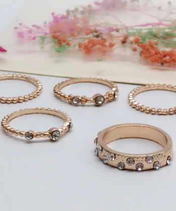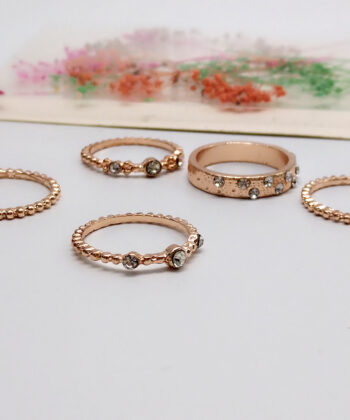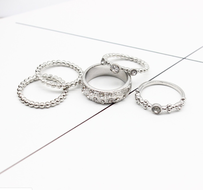 Product Name: Rose gold stackable diamond set five-piece ring European and American gemstone ring Fashion ring ring