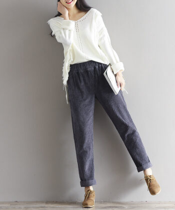 2021 large size women's art Fan Xian thin corduroy pants autumn and winter loose casual trousers