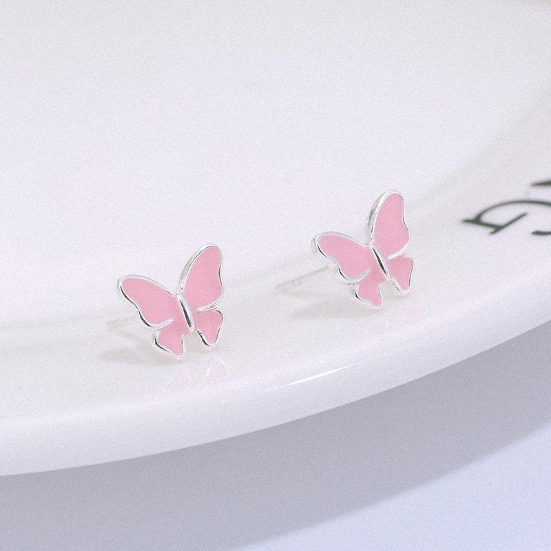 Sterling silver stud earrings literary cute butterfly stud earrings Korean fashion earrings